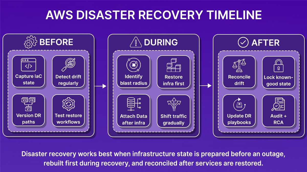 Recovery plans assume the infrastructure code matches what was running. Drift breaks that assumption.