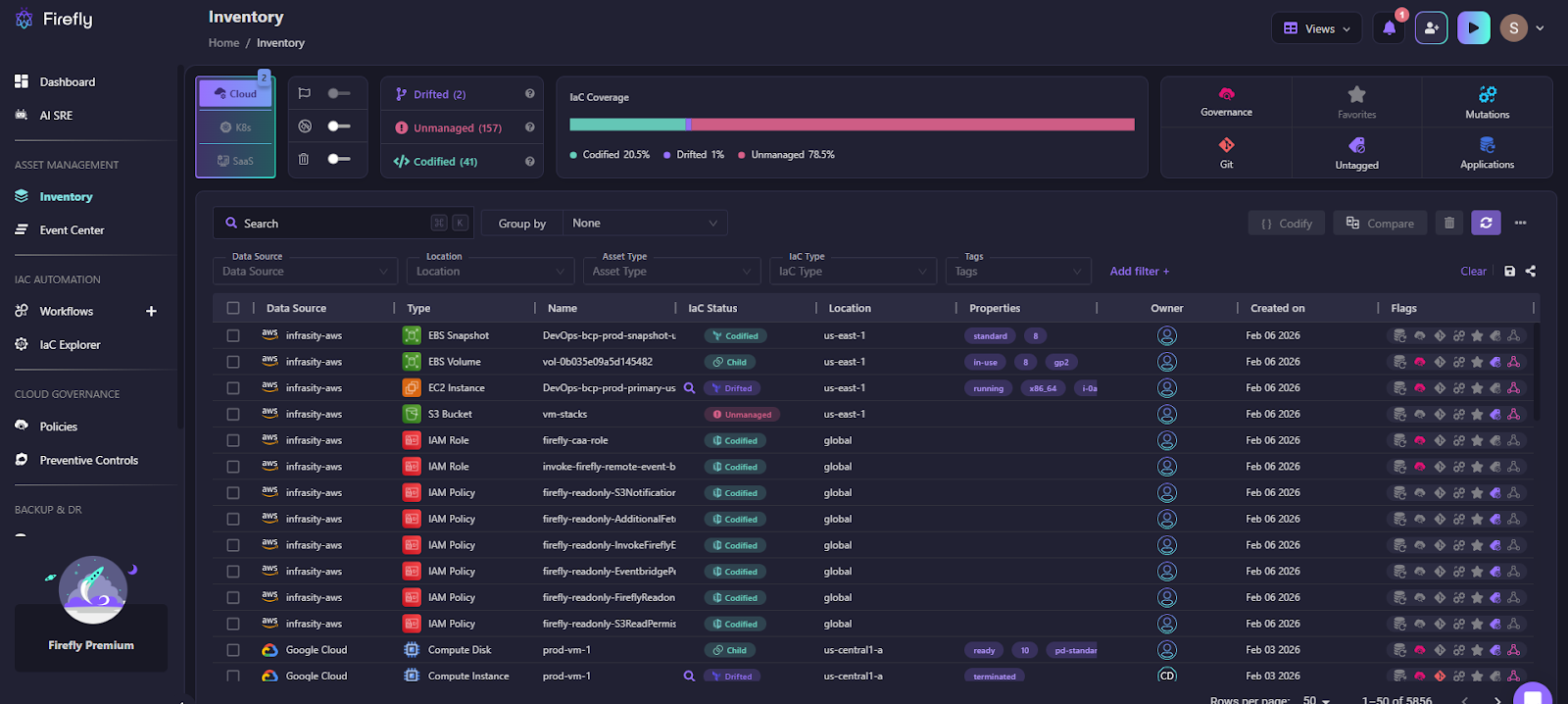 Firefly provides a consolidated inventory view that shows: