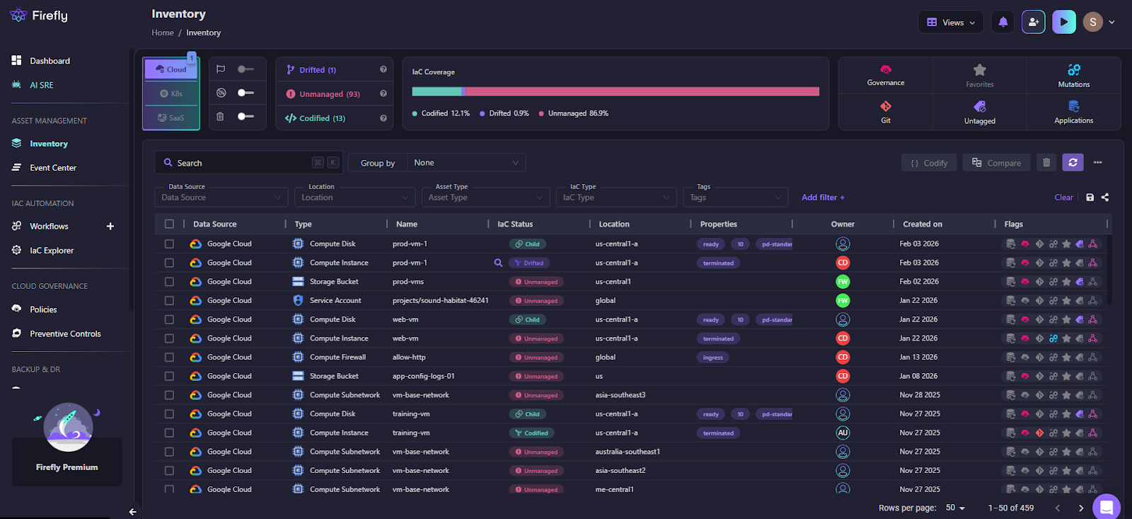 Here is how Firefly maintains the inventory by continuously scanning all integrated cloud providers (support AWS, GCP, Azure, and OCI) and maintaining a live infrastructure inventory: