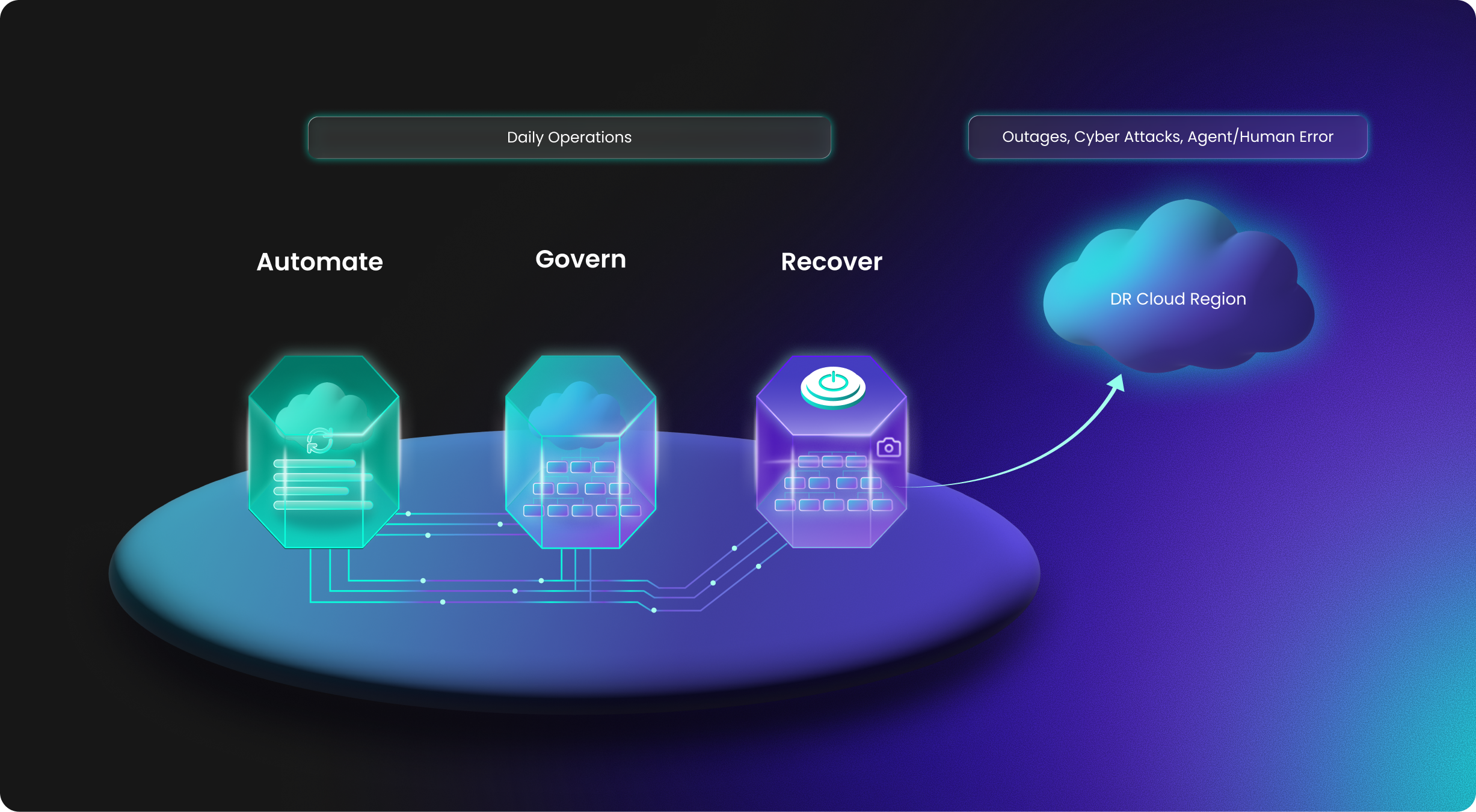 Ensure business continuity with agents instantly rebuilding your infrastructure during outages and cyberattacks. Eliminate manual runbook usage, gain confidence in your ability to recover, and reduce MTTR with automated cross-region failover.